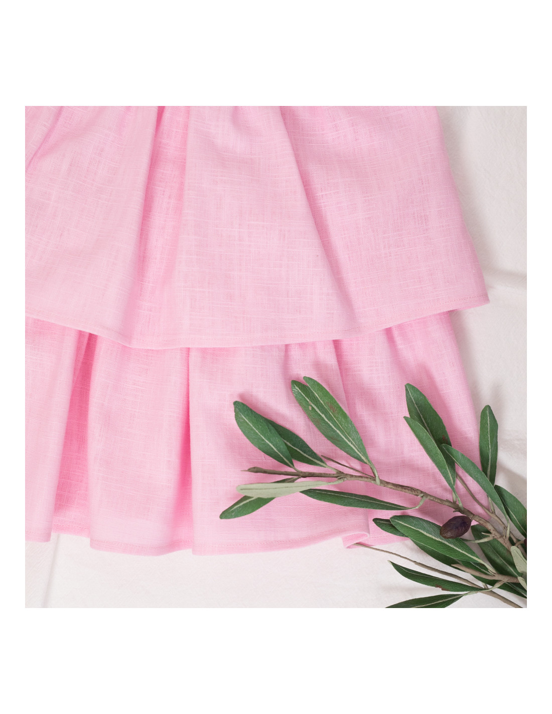 rochie din in roz cu volane