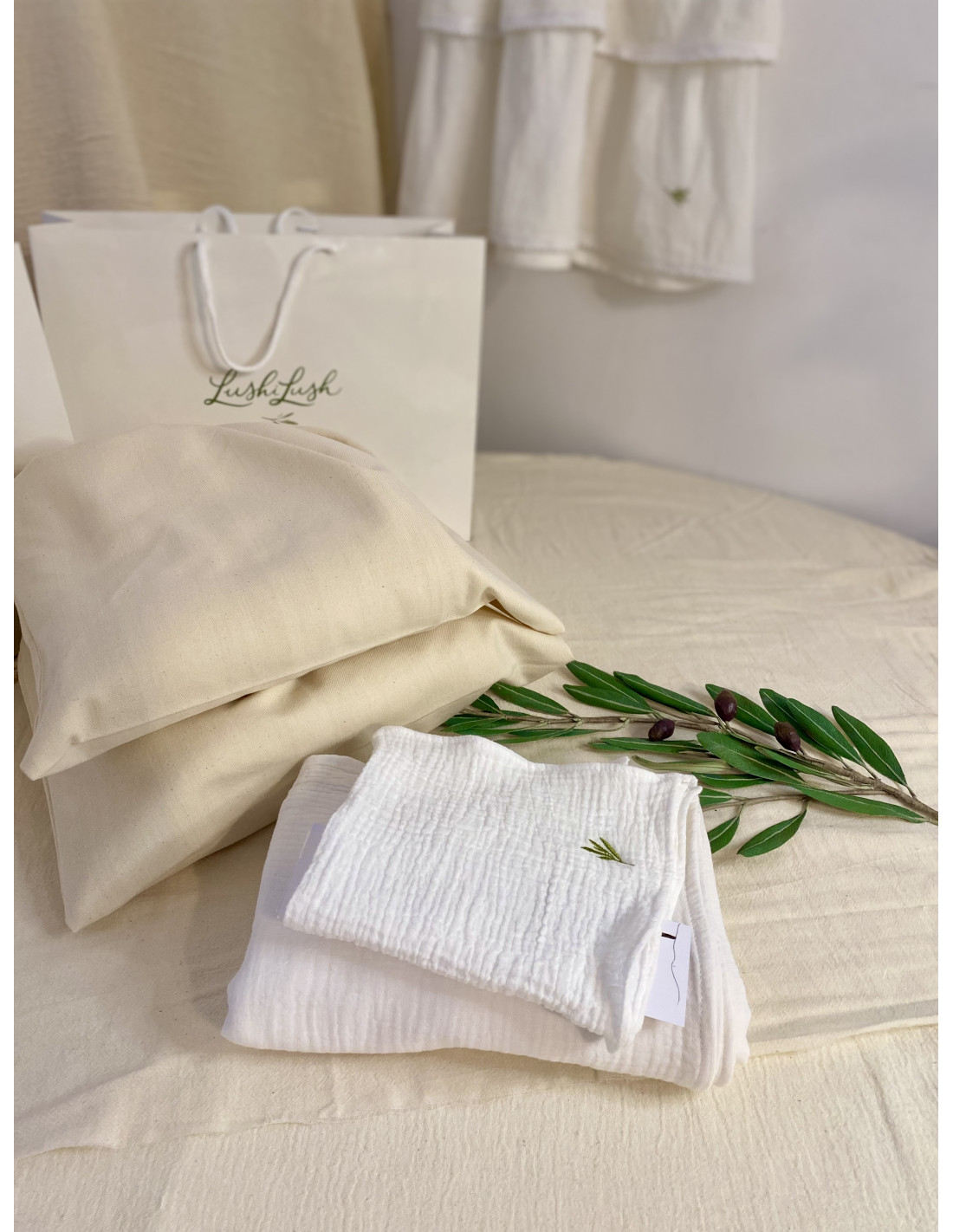 - Prosop din muselină din bumbac 100%, dimensiune 100x130 cm;